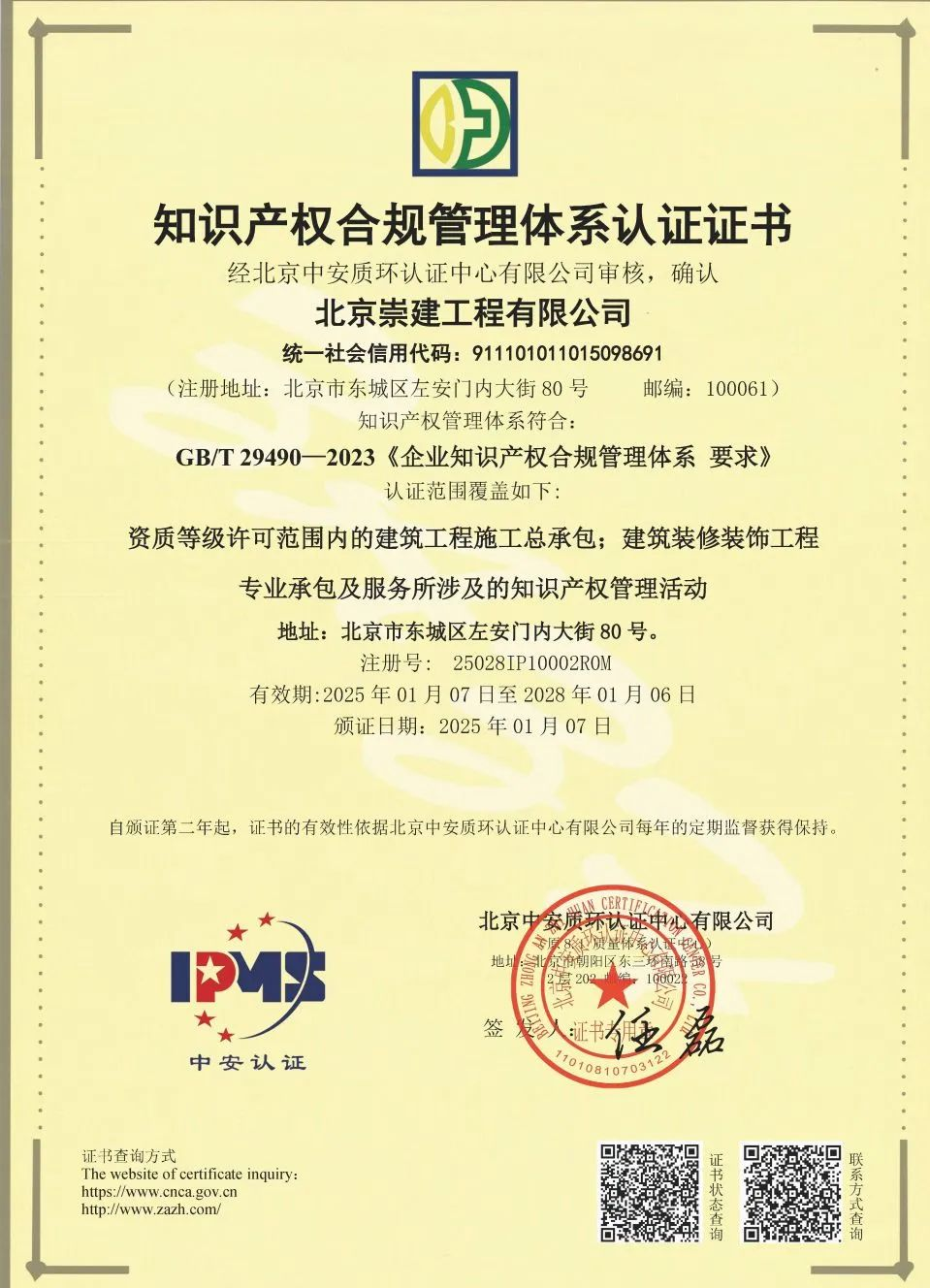 近日,崇建公司正式通過國家《企業(yè)知識(shí)產(chǎn)權(quán)合規(guī)管理體系要求》(GB/T29490-2023)貫標(biāo)認(rèn)證,標(biāo)志著公司在知識(shí)產(chǎn)權(quán)創(chuàng)造、運(yùn)用、保護(hù)及管理的全流程邁入規(guī)范化、系統(tǒng)化新階段。這一權(quán)威認(rèn)證的獲得,不僅是對公司科研實(shí)力與創(chuàng)新管理能力的高度認(rèn)可,更為企業(yè)高質(zhì)量發(fā)展注入強(qiáng)勁動(dòng)能。